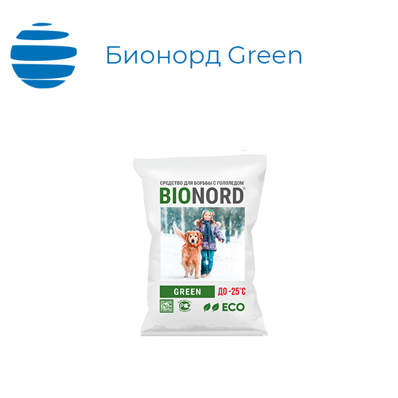 Противогололёдный реагент BIONORD Green (-25) — это многокомпонентный материал, предназначенный для использования на дорожных покрытиях любого типа из асфальта, камня, бетона и плитки.